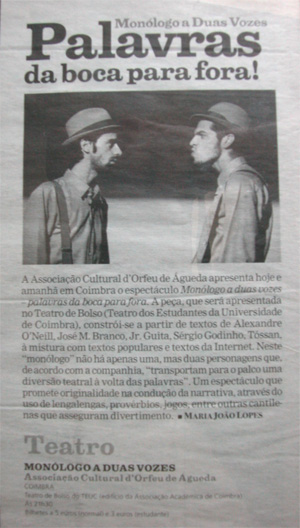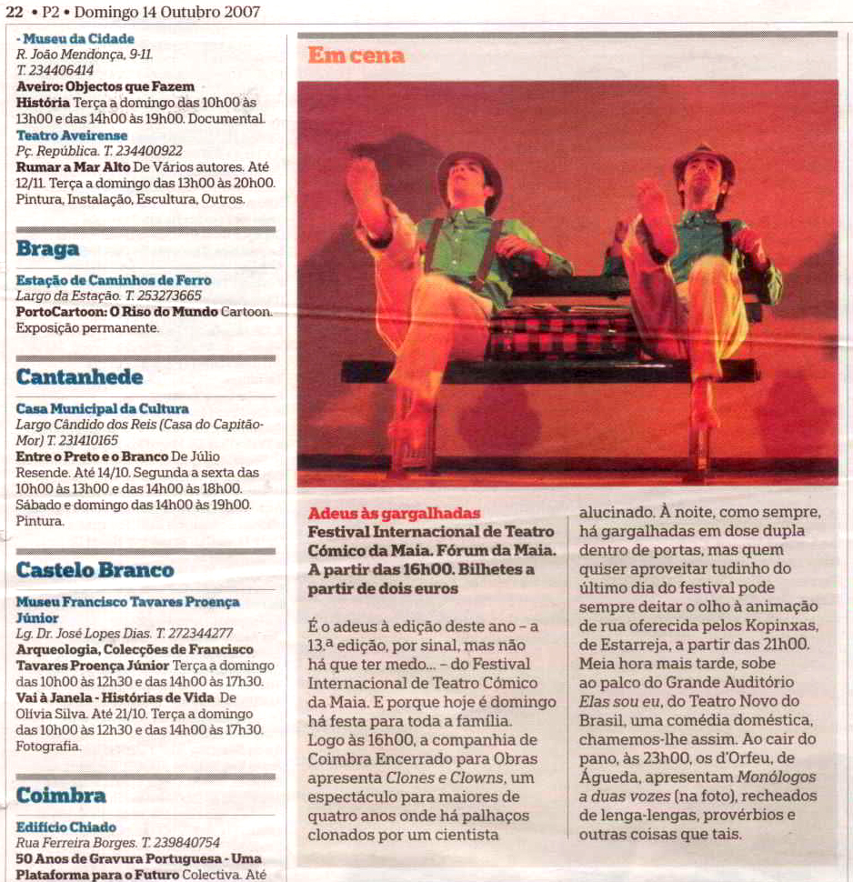 Recorte do "Público 2" de 14 de Outubro de 2007